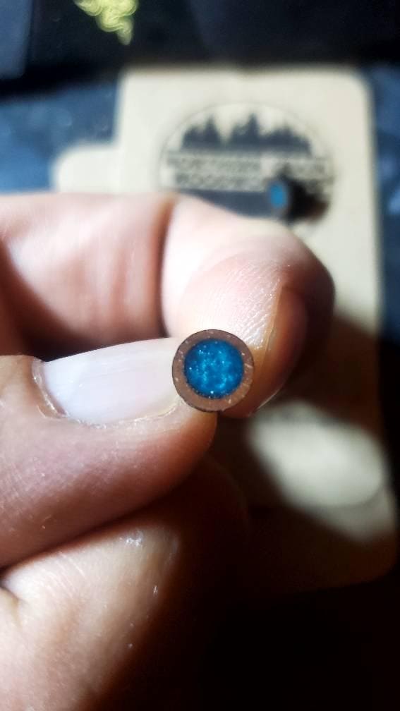 Handmade from black walnut wood, these natural stud earrings are unique in character and will stand out with a translucent resin that changes with the light from blue to deep teal and turquoise. We make each set by hand, polish, then seal them with a protective coating. They are strongly bonded to hypoallergenic (nickle-free) posts.