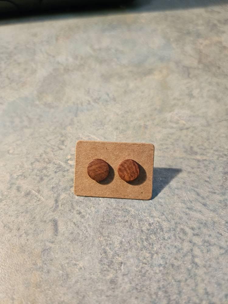 Handmade from Thuya Burl wood, these natural stud earrings are unique in character and will stand out. We make each set by hand, polish, then seal them with a protective matte coating. They are strongly bonded to hypoallergenic Surgical Steel (nickle-free) posts.